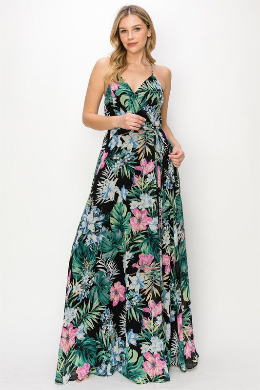 Polka Dot Hair Ball Halter Neck Dress in Black